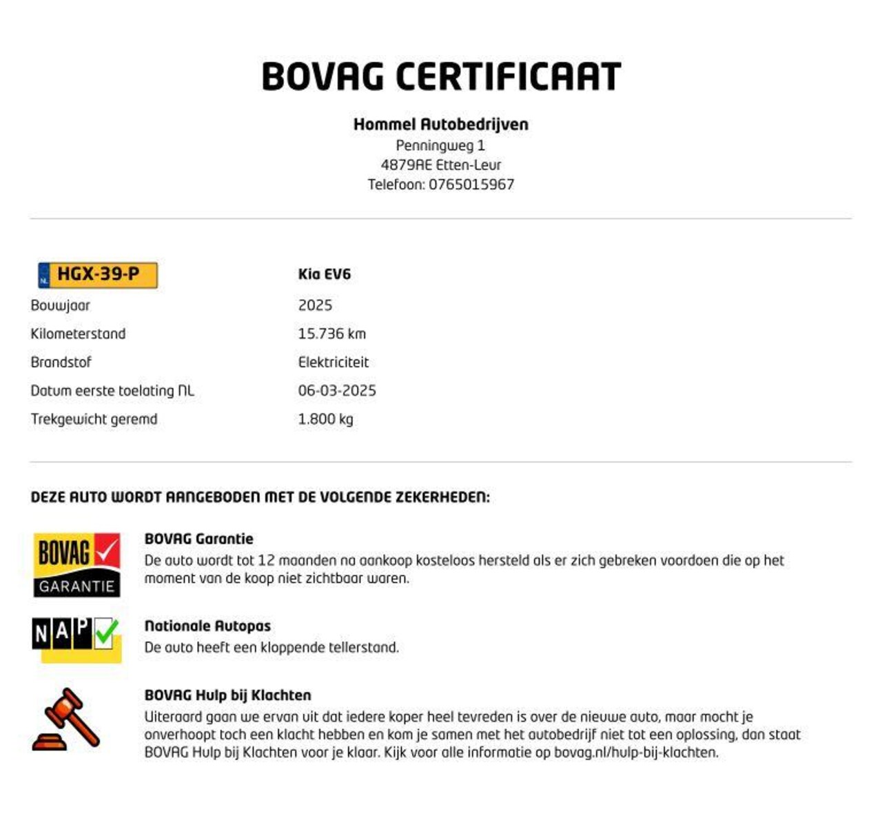 Kia EV6 Air 84 kWh SOH 99.5%- GROOT ACCU PAKKET - ORIGINEEL NEDERLANDSE AUTO - TREKHAAK 1.800 KG G - Leaselabel
